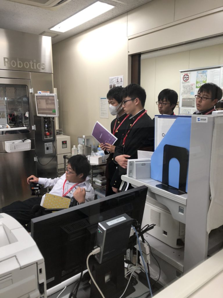 12月15日(土)に行われた医学部講演会の出席者の中から5名が参加し、臨床シミュレーションセンターでの講義(通常医学部5年生に行う講義を名古屋高校生向けにアレンジ)と医療機器の実施体験、小児病棟のホスピタルアート、中央放射線部、化学療法部、手術室・手術内容の見学や、最新放射線機器、抗癌剤治療についての説明など貴重な体験をすることができました。
