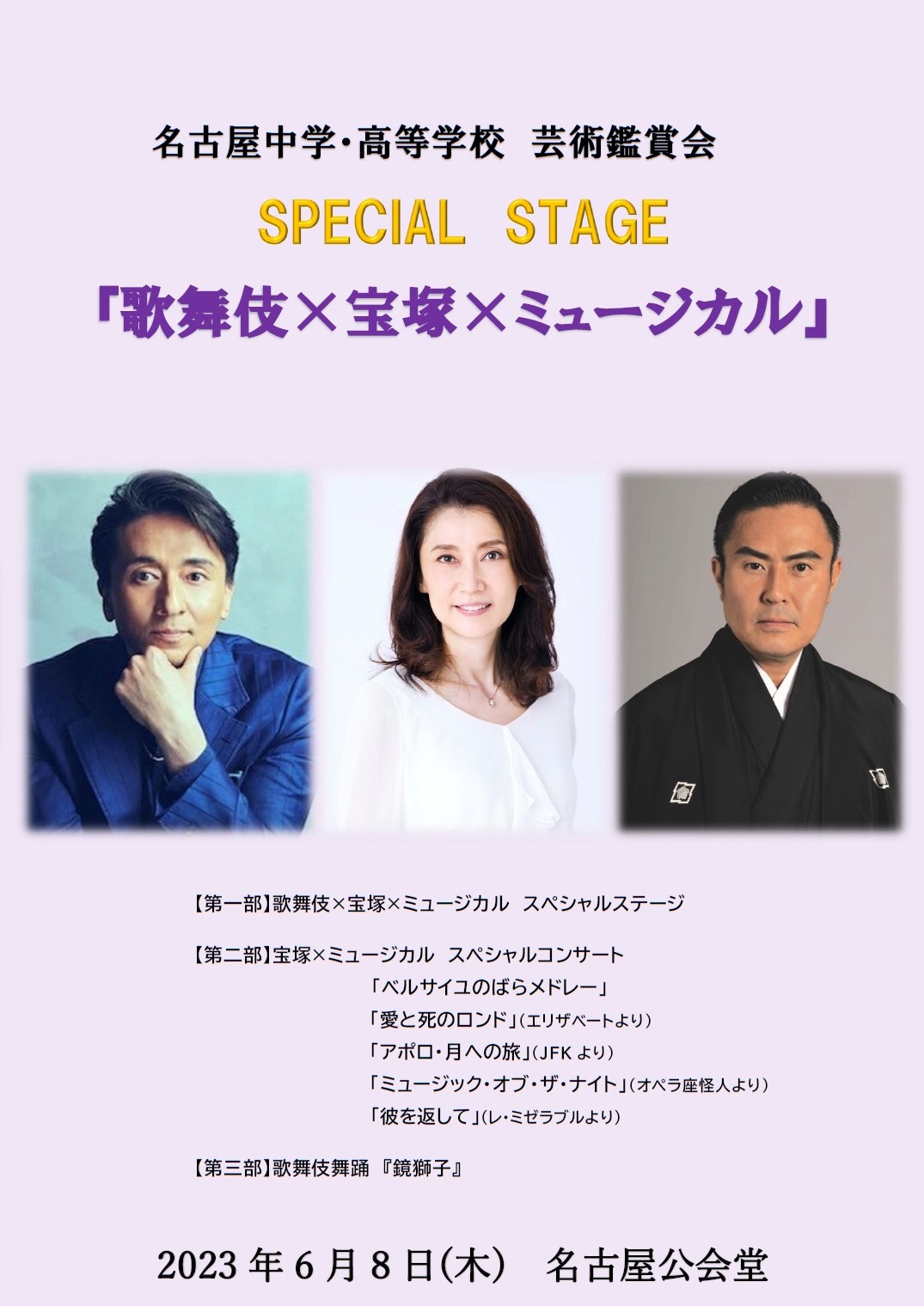 【中学校・高等学校】芸術鑑賞会 2023年6月8日(木) 会場:名古屋市公会堂 SPECIAL STAGE 『歌舞伎 × 宝塚 × ミュージカル』 各界を代表する方々にスペシャル・ステージを披露していただきました。 投稿日: 2023年6月9日 (2023年6月22日) 投稿者: %s meigaku カテゴリー: 学校行事、高等学校、中学校 天体観望会 2023 のお知らせ 高校サッカー部