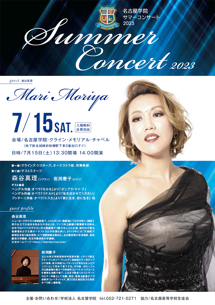 来たる7月15日(土)14時から本校チャペルにて名古屋学院サマーコンサートが開催されます。