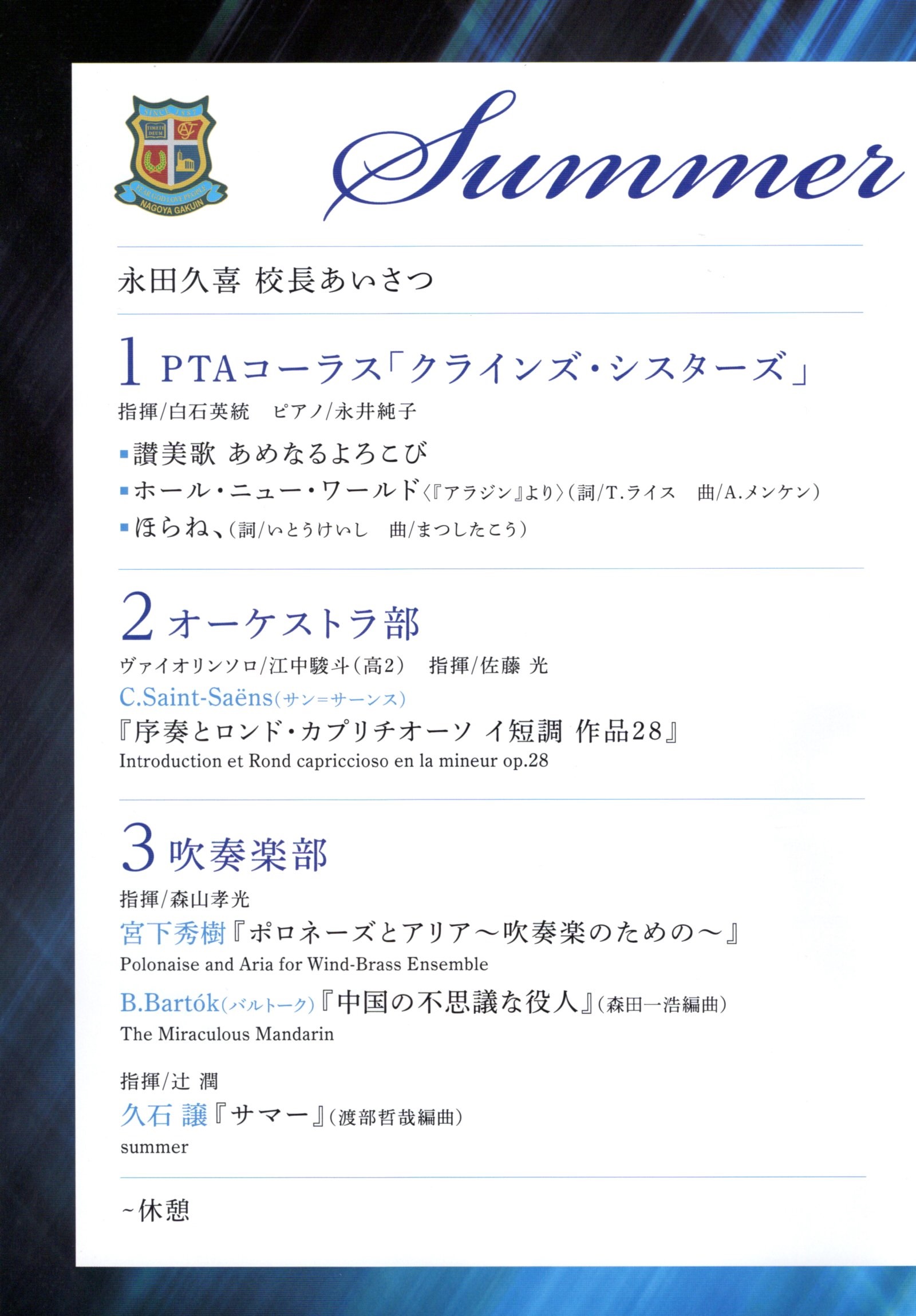 名古屋学院サマーコンサート 7月15日(土) 開場13時30分 開演14時00分