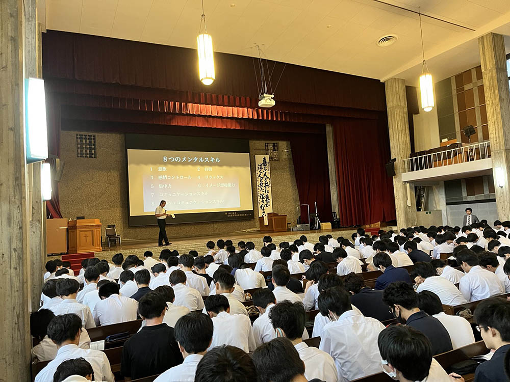メンタルコントロール術を学びました。WBC日本代表監督栗山氏や、同ヘッドコーチ白井氏が師匠と仰ぐ人物の言葉に本物を感じました。昨年度の高校3年生にも実施したものを高校1年生で経験したことは、今後の2年間に大きな影響を与える思います。