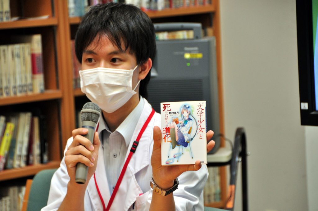 国語科の野牧先生は谷崎潤一郎『刺青』……。おぉ……中高生にあえてぶつけてきました。それに対して、理科科の関根先生が選んだのは野村美月『”文学少女”と死にたがりの道化』です。ラノベということで野牧先生の逆張りできました。