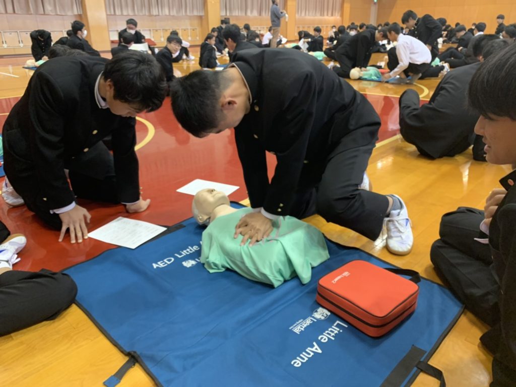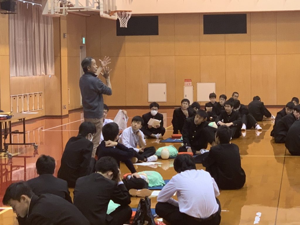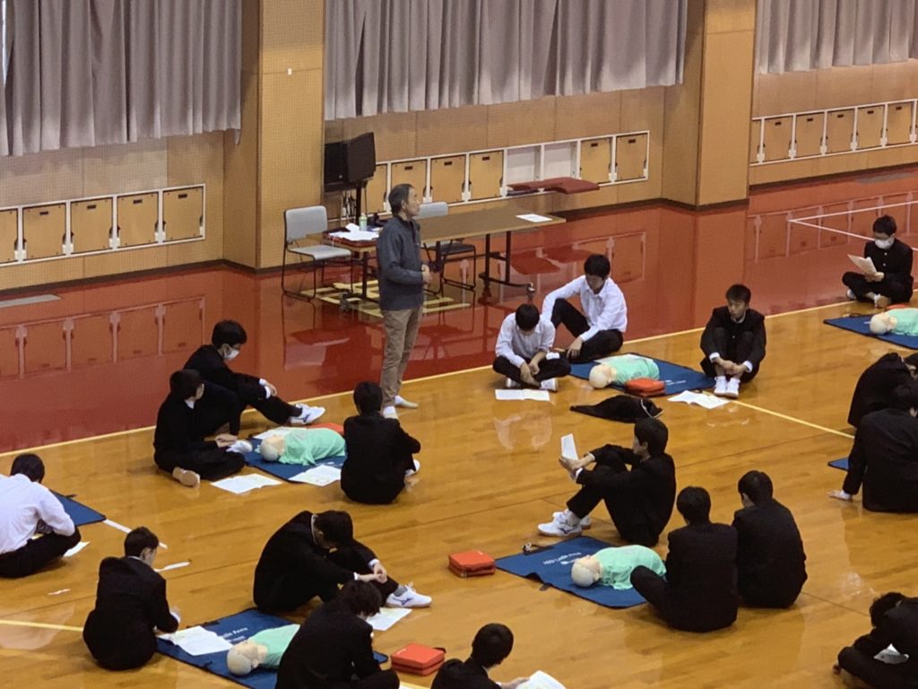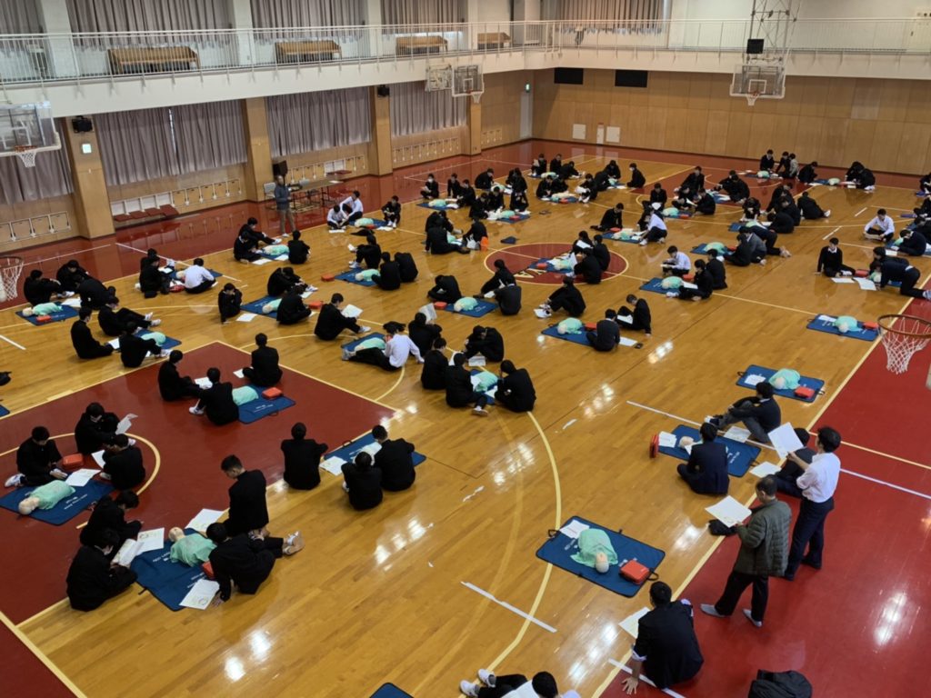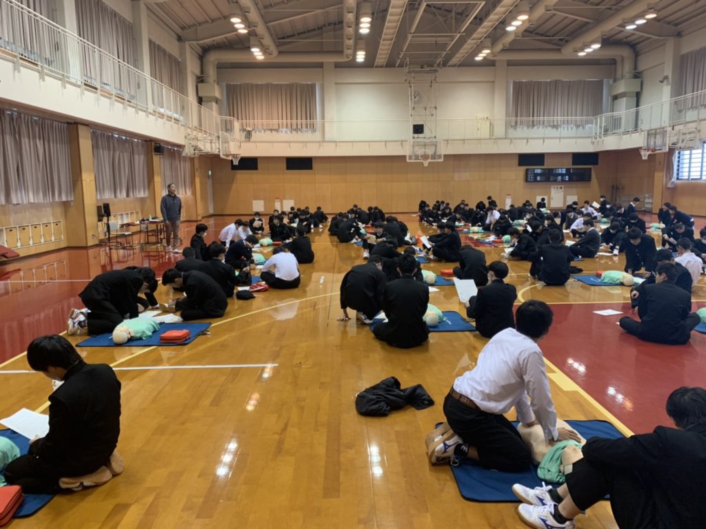 中2・高1で心肺蘇生実習 本校では、毎年豊橋ハートセンターの杉浦武治先生を講師にお招きし心肺蘇生実習を行っています。 「とにかく心臓マッサージを開始し、続けましょう!」12月12日(木)に、杉浦先生の熱心な指導のもと2~3人で1体のダミー人形を使い実習しました。 投稿日: 2019年12月13日 (2023年5月9日) 投稿者: %s meigaku カテゴリー: 学校行事 PTAガーデニングクラブ クリスマス昼食会を行いました 東警察の交通安全キャンペーンに協力