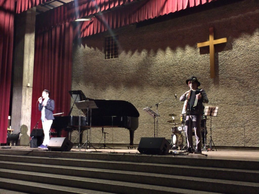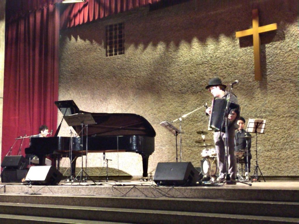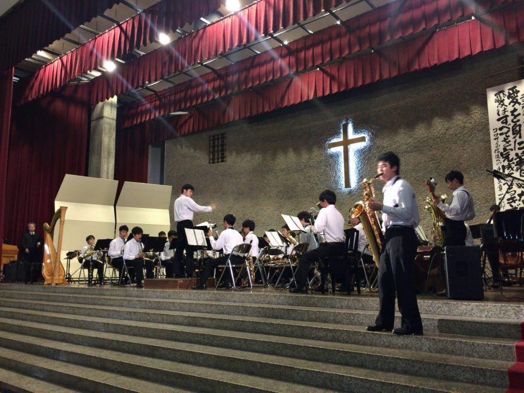 11月16日(土)にチャペルコンサートが行われました。おなじみのオーケストラ部、吹奏楽部、聖歌隊、クラインズ・シスターズに加え、今年はゲストにキクチ タケシさんと秦コータローさんをお招きしました。また、当日は例年以上の来場者に恵まれ、チャペルは2階席まで客席が埋まりました。演奏はもちろん大変素晴らしく、聖歌隊とのコラボも実現しました。コンサート終了後はクリスマスツリーの点灯式もあり、素晴らしい1日になりました。