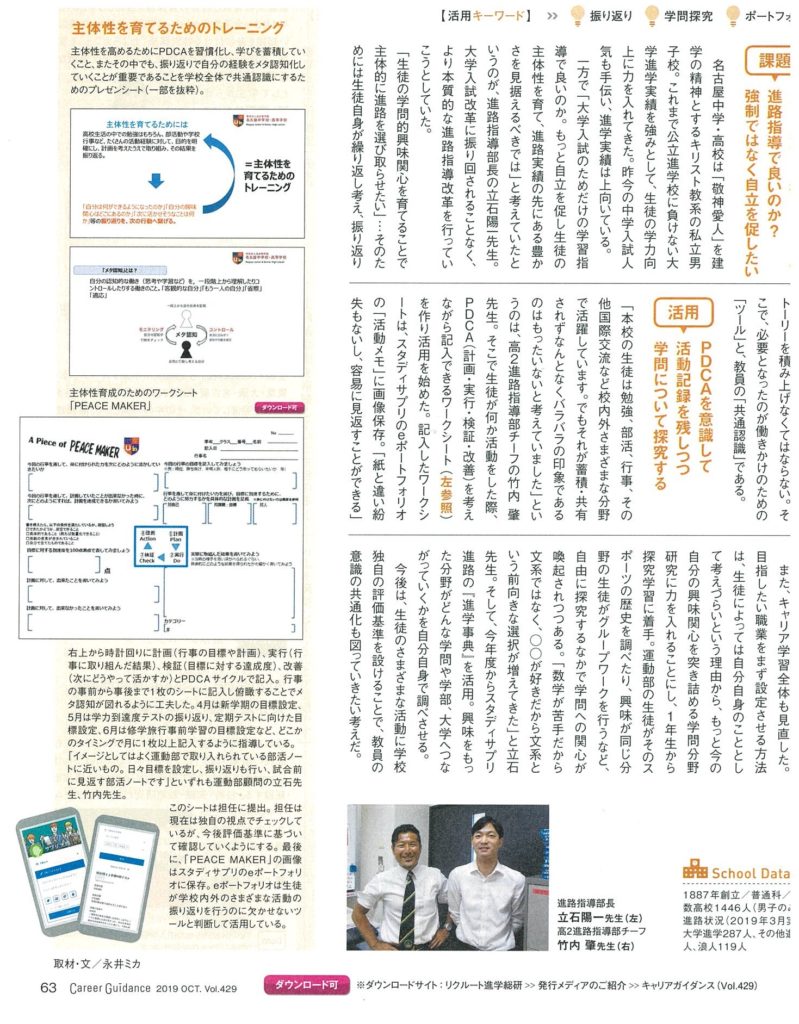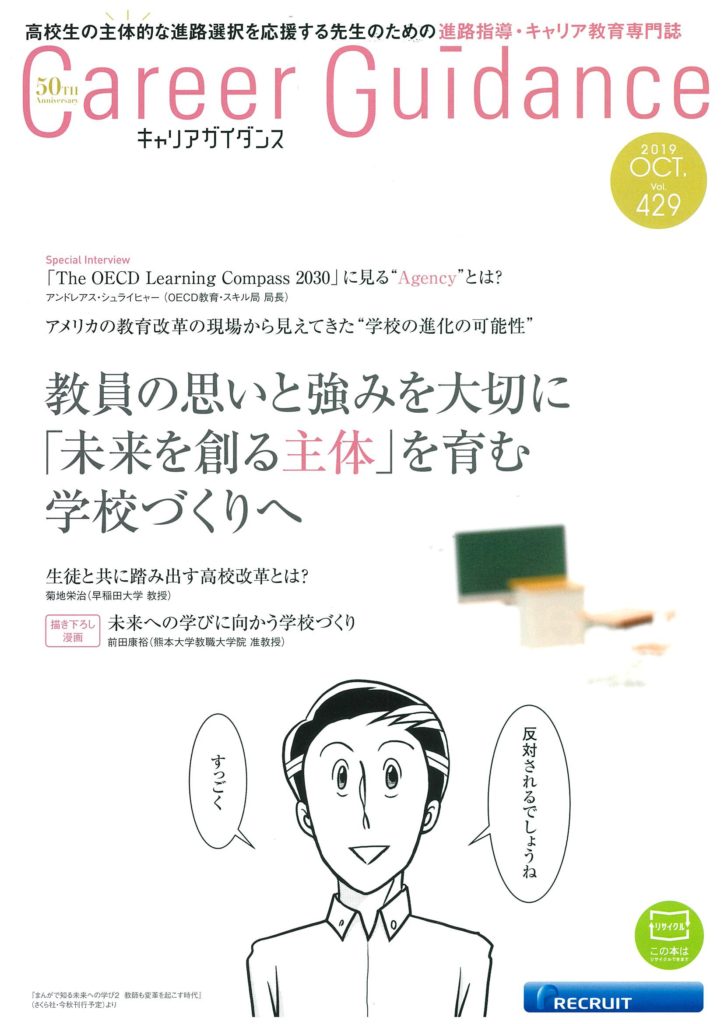 リクルート キャリアガイダンス(vol.429 2019/10/10発行)にて、本校の取り組みの一部を取り上げていただきました。ありがとうございました。