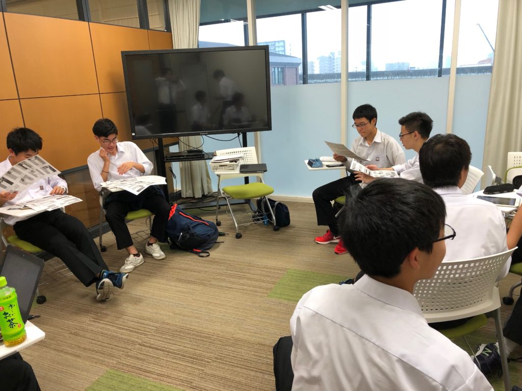 6月6日(水)、図書館ラーニングコモンズにおいて、高1高2の生徒8名が集まり、「模擬国連」勉強会が開催されました。生徒たちは、6月16日(土)に見学させていただく予定になっている、「模擬国連」上南戦(=上智大学と南山大学の対抗戦)の議題解説書(BG)を読み込んだうえで、出席しています。この日はペアごとに国割をし、Position and Policy Paper(PPP)の作成について話し合いました。実際に会議に参加することを想定して、会議に臨むにあたって、どのような点についての下調べが必要か、を考えました。各ペア、見学の前日までにPPPを完成させる予定になっています。見学の際には、自分たちの担当国の大使である大学生が、実際にはどのようなことを主張し、どのような行動をとっているのかを観察し、学びを深める予定です。