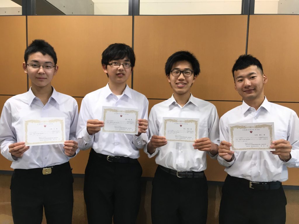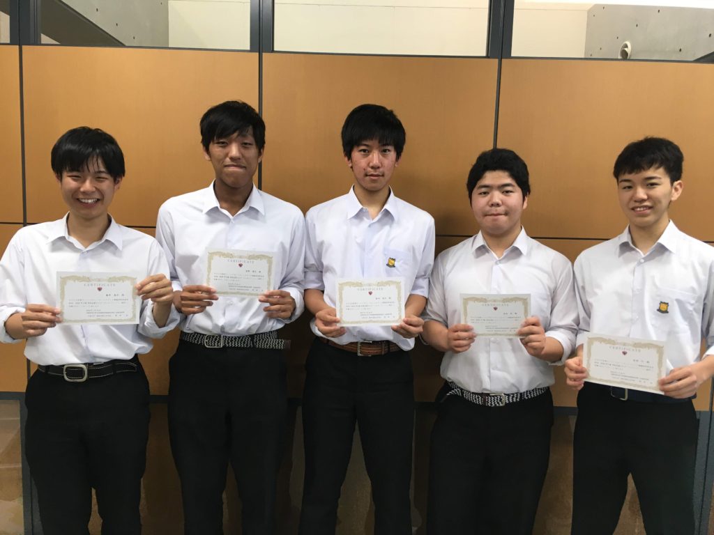 6月1日の高校一斉朝礼にて、2017年度SGH甲子園に出場した本校生徒が表彰されました。 減災チームの4人はプレゼンテーション部門に出場することができました。 高3の5人はポスターセッション部門に出場しました。 減災チームは、今年度も甲子園目指して、すでに動き始めています。 そして、高3の5人も既に受験に向けて頑張っています。 努力の成果が実ることを祈っています。 それぞれの指導に携わって頂いた先生方、本当にありがとうございました。