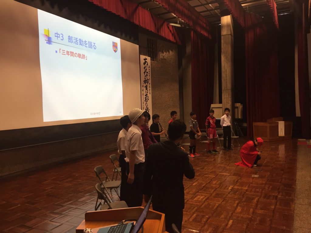 説明会では、この夏の名中生の取り組み(ボランティア活動・部活動・夏期講座・校外学習・エクステンション)についてお話ししました。また中学3年生による部活トークショーも楽しんでいただけたものと思います。安倍首相のようなマリオが現れ、来年名中でお会いしましょうとメッセージを伝えたのもビックリだったでしょうね。