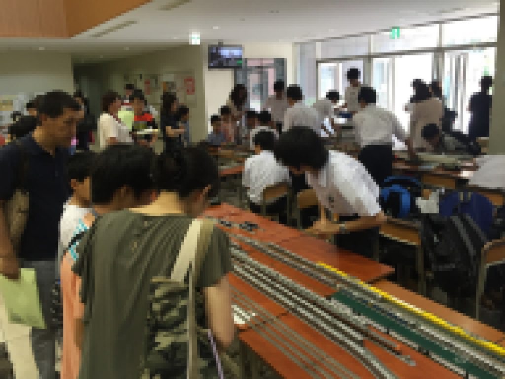また名中説明会では必ずエントランスホールに出現する、名中鉄道研究部のジオラマも、いつも通り参加男子とお父さんの目を釘付けにしていました(笑)