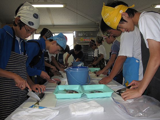 今夏も,富士登山(8/10~12)と福井県美浜町(8/16~18)の体験学習を実施しました。どのコースも3学年の混合編成で先輩後輩が一緒になって、協力して様々なプログラムに挑みました。富士登山はあいにくの天気でしたが、全員登頂しました。自然の恐ろしさを実感しました。美浜体験では,大敷網漁に挑戦しました。一人では抱えきれないほどのカジキマグロが2尾も捕獲でき大歓声があがりました。宿に帰り,地元の方々に指導していただき,捕れた魚をさばき,昼食にいただきました。