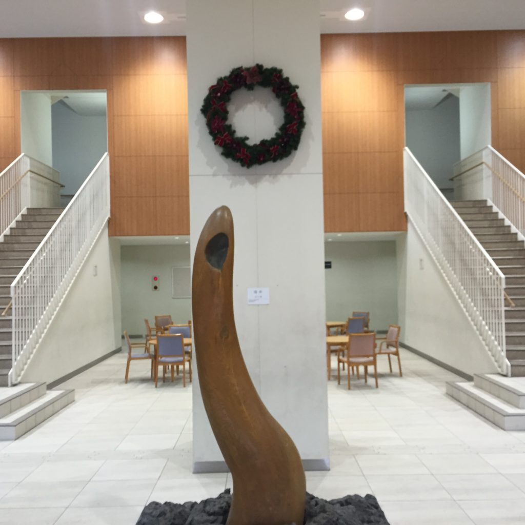 エントランスには大きなリースも飾られ、名古屋中高もXmasに向けて準備をしています。