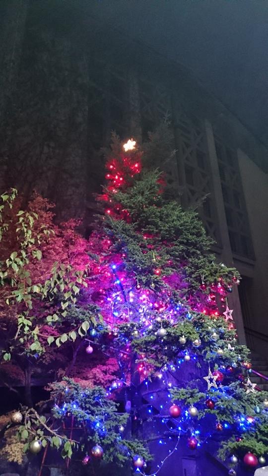 先週チャペルではXmas点灯式も行われ、五本のアドヴェントキャンドルに灯がともされました。チャペル階段横のもみの木にもベツレヘムの星が輝き、デコレーションが施され、部活が終わって家路につく生徒諸君の心を暖かくしています。