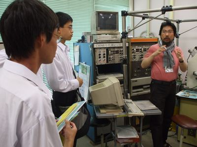 年代測定センターでは、岩石の年代を測定するCHIME法と、歴史の教科書でおなじみの、比較的若い年代を測定する炭素C14法の二つの設備を有しており、名古屋大学の先生方は丁寧に設備や研究の説明をしてくださりました。生徒達の探究心を十二分にくすぐったことと思います。また、生徒達はこの研究の説明を通じて、真理の探究には理系・文系どちらも必要であることも学んだことと思います。