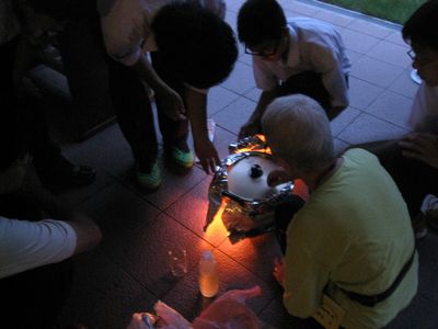 ・ハイゼックス袋を使用した空き缶飯盒炊爨