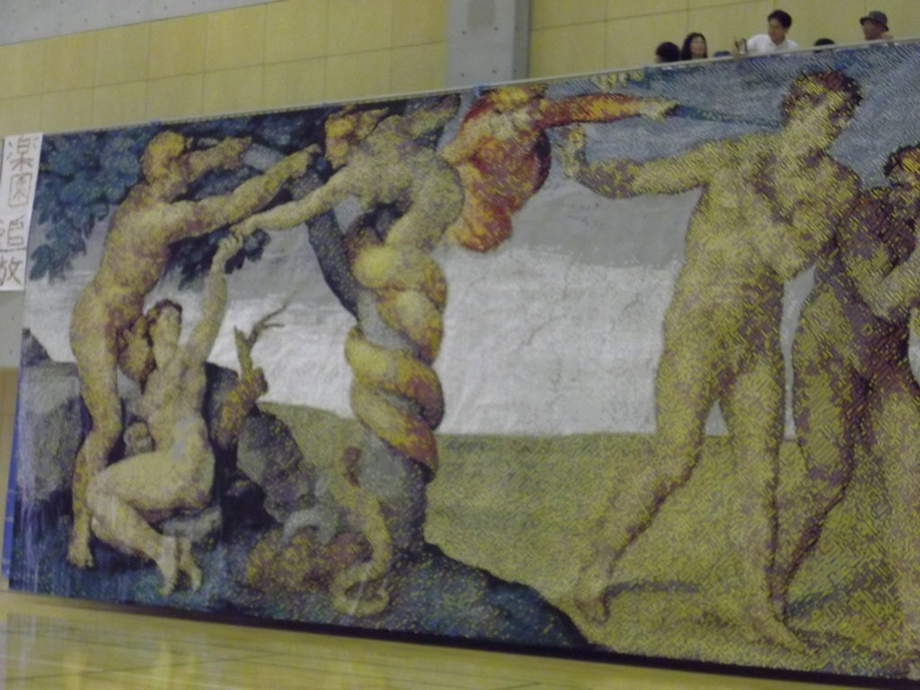 中学2年生が作成したモザイクアート「楽園追放」は金山にあります名古屋都市センターに展示される予定(11月28日取付・12月26日撤去)となっております。次年度以降もこのビッグアートを継続して実施し名古屋中学校の伝統となればと思っております。