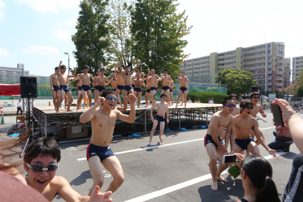 1年生のクラス企画から。クラス全員水着となって、ダンスを披露しました。
