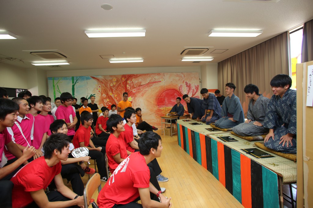 2年生のある企画から。和を体験するというこの企画、大喜利を演じていますが.室内にししおどしを作成したり、投扇興を体験してもらったりしていました。