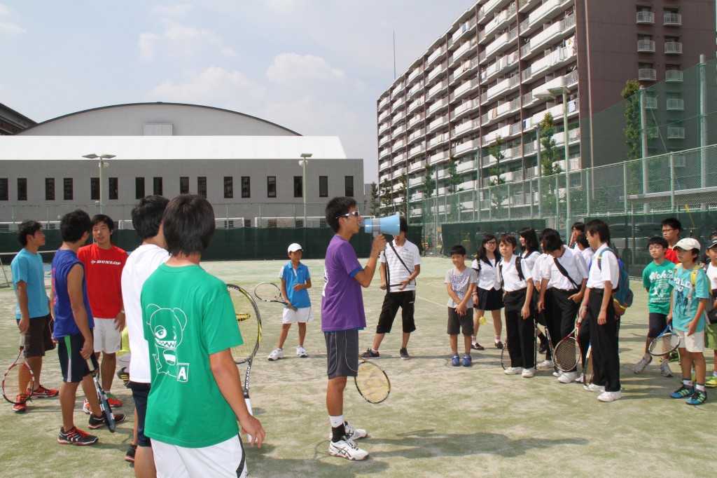 こちらも全国レベルのテニス部員による、テニス体験。女子もいっぱい体験しました。恋は芽生えた?