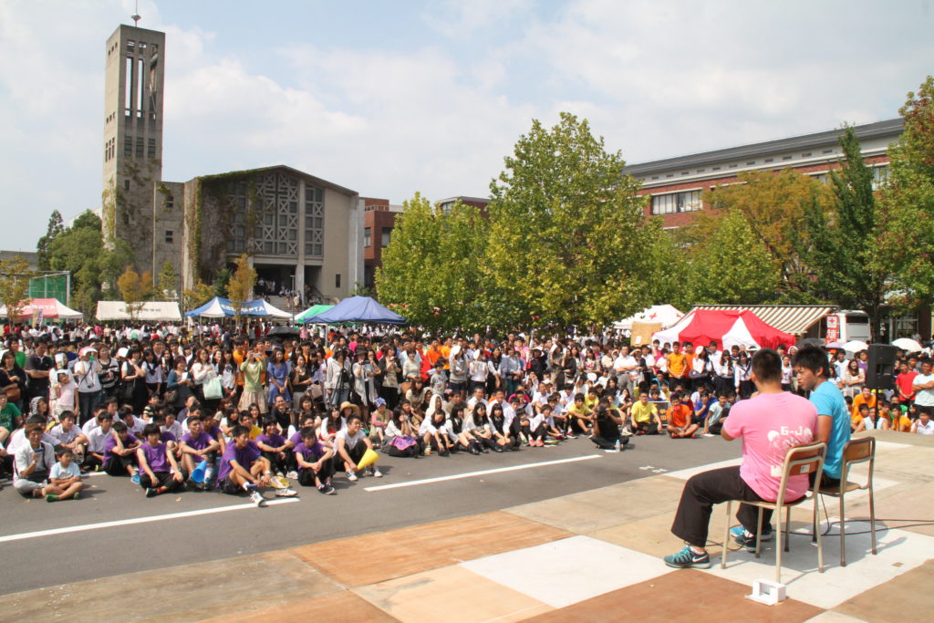 これも定番、ラグビー部の寸劇・漫談。多くの観客を集めていました。
