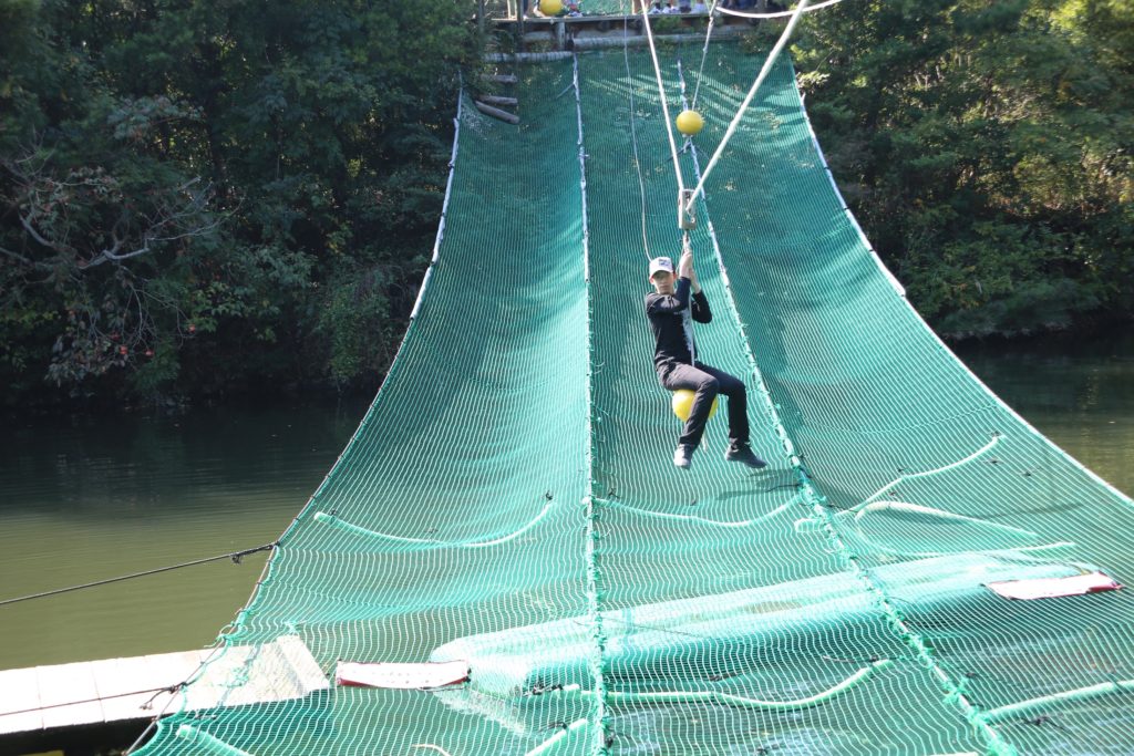 生徒は班ごとにカレーライスを作り、その後、アスレチックで体を動かすという行程でした。カレーライス作りは、全体的に少し前に流行した「スープカレー」のようなものが多かったのですが、想像していたよりはいい味のカレーライスにはなっていました。