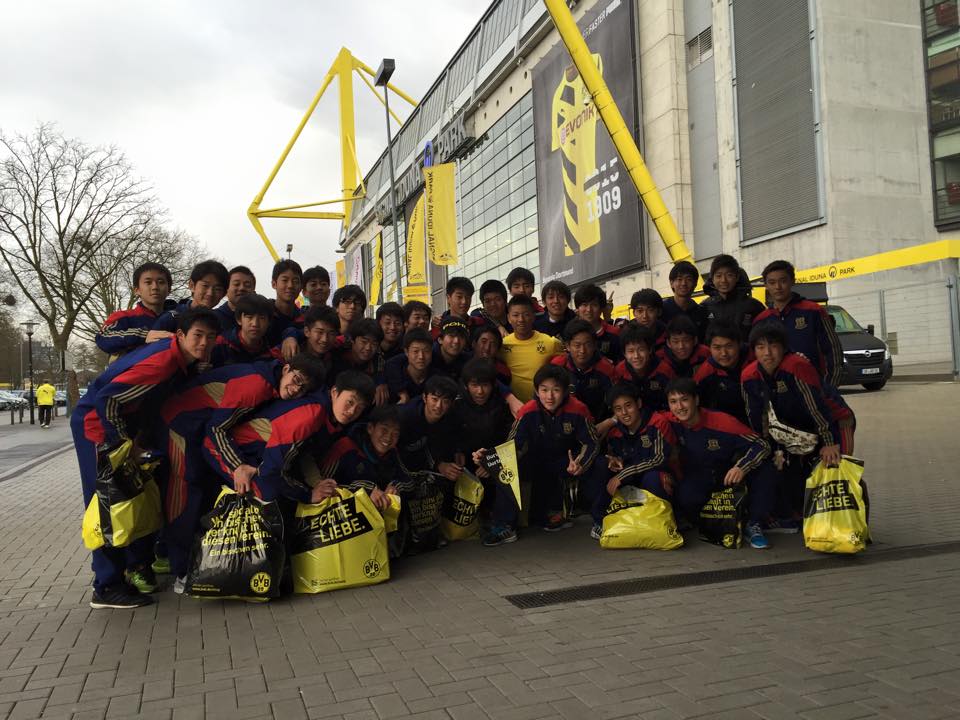 名古屋高校サッカー部はドイツ遠征を2015年3月24日から4月2日まで行いました。海外遠征は6年目、ドイツへは2年目となります。ドイツ北部ドルトムント付近にある、カーメンというスポーツシューレに宿泊をしながら地元のチームと11試合を行いました。中でもボルシアドルトムントという、香川真司選手の所属するチームのユースチームとも試合をしました。今年はチームとしての結果もまずまずで、8勝3敗という成績でした。本場のサッカーを見るということで言うと、ユーロ2016の予選が隣国オランダで行われていて、陸路でオランダに入り、オランダ-トルコの真剣勝負を観戦することができました。高校年代で海外を経験することで視野も広くなり今後の人生に大きな影響があることを確信しています。