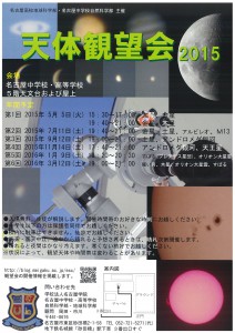 名古屋中学校・高等学校 自然科学部・地球科学部主催 2015年第3回目の天体観望会が9月12日(土)に開催されます。