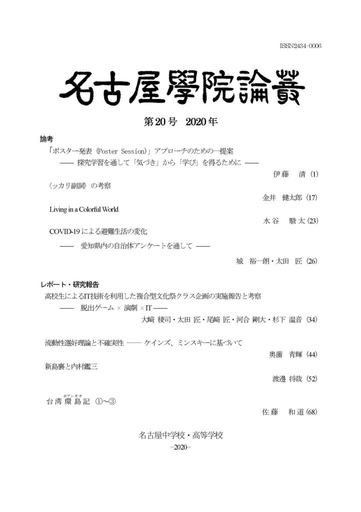 書誌データ:『名古屋学院論叢』|タイトル読み ナゴヤ ガクイン ロンソウ|発行元:名古屋学院図書委員会|1号(昭37-)|ISSN2434-0006